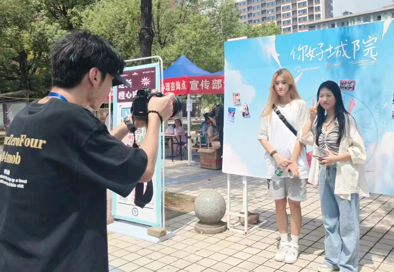 各二级学院与团委、宣传部、餐饮中心“高招”频出,精心准备了各种“花样”迎新活动,让新生们感叹仪式感“爆棚”。团委在迎新点两侧搭建了“欢迎小橙子”特色打卡装置,吸引不少新生、家长在此驻足打卡。土木工程学院以微信朋友圈为背景制作了创意打卡墙,上面既有老师、学长对“萌新”的点赞,还有对他们的深深寄语。宣传部开展了“迎新橙心映象”活动,“新橙子们”纷纷在背景墙前与家长、新同学合影留念,并在现场打印出的照片背面写下自己对未来的期许。在第一餐饮中心,高高立起的大红气拱门分外喜庆,推出各种美食招待来自远方的客人。