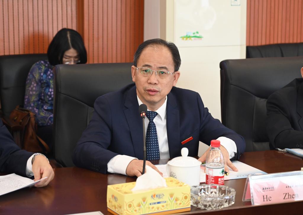 何振致欢迎辞,他代表学校对各位来宾的到来表示热烈欢迎和诚挚问候,并简要介绍了学校的办学特色、学科平台、应用服务和国际合作情况。他表示,加纳海岸角大学孔子学院自2016年6月份成立以来,创建了一个汉语教学和中加文化交流的重要平台,搭建了中加友谊桥梁,推动了两国文化的交融与发展。希望双方进一步加强联系,在更宽广的领域里开展更深层的交流与合作,携手共进,互利共赢。