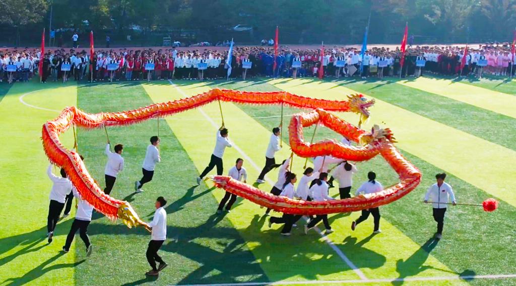 在其后的文艺表演中,体育学院的舞龙表演展现了传统文化的深刻魅力,舞龙者们精湛的技艺和默契的配合让金龙活灵活现;音乐与舞蹈学院带来的集体舞蹈《热烈》和《我们都是追梦人》舞动人生,唱响青春,正式拉开了运动会的序幕。