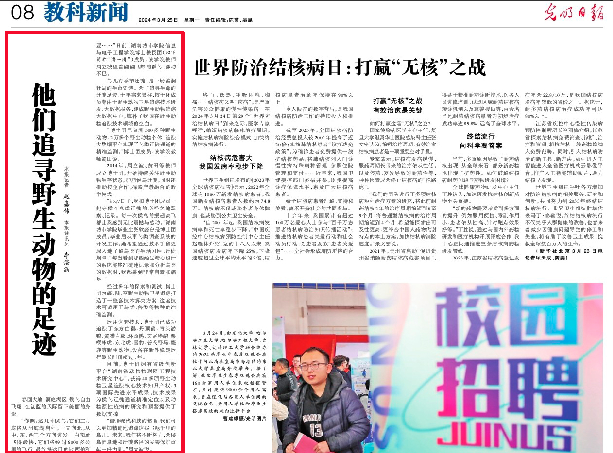 《光明日报》3月25日第8版报道JN江南·(中国)体育官方网站博士团聚焦野生动物卫星追踪技术研发。
