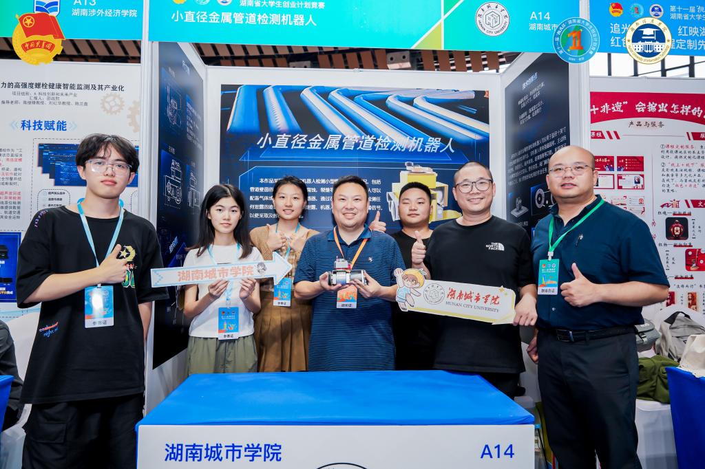 最终,机械与电气工程学院刘琰老师指导的《科芯精工——电子封装楔形劈刀国产化的开创者》、李航洋老师指导的《声驰千里——声纹识别技术助力智能养殖发展》两个项目荣获第十一届“挑战杯”湖南省大学生创业计划竞赛终审决赛本科组金奖;机械与电气工程学院黄志亮老师指导的《小直径金属管道检测机器人》、李航洋老师指导《污底克星——仿蜘蛛船体清洁》机器人、材料与化学工程学院黄毅老师指导的《“吃渣 纳碳 吐金”——精炼渣全量高附加值资源化利用技术》获得本科组银奖。