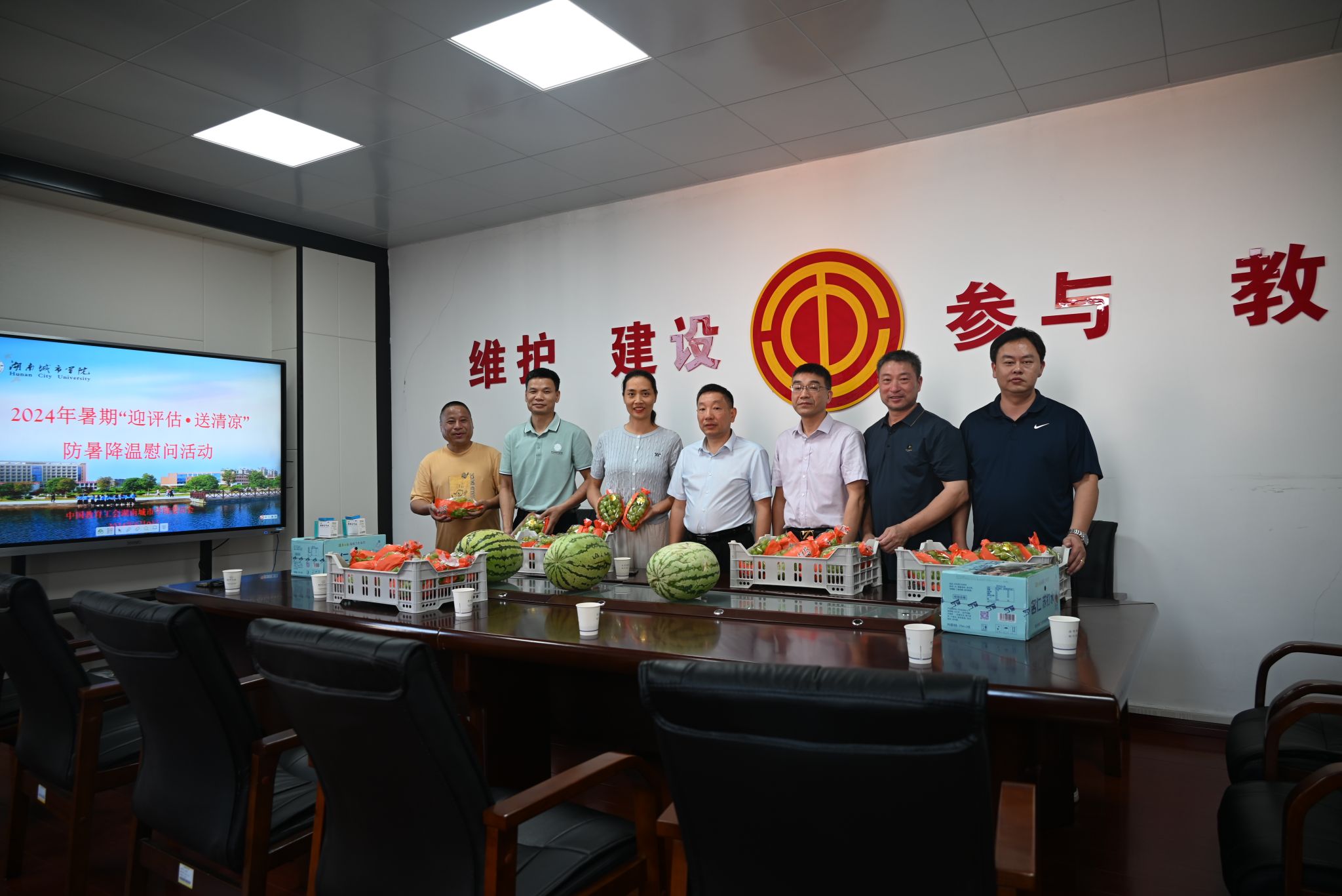 本网讯(通讯员 周敏)8月9日,学校工会组织开展“夏日送清凉”慰问活动,副校长谭献良看望慰问为学校审核评估工作、保障学校日常运行而奋战在一线的教职工,发放防暑慰问物资,让教职员工在炎炎夏日感受到了一抹清凉。