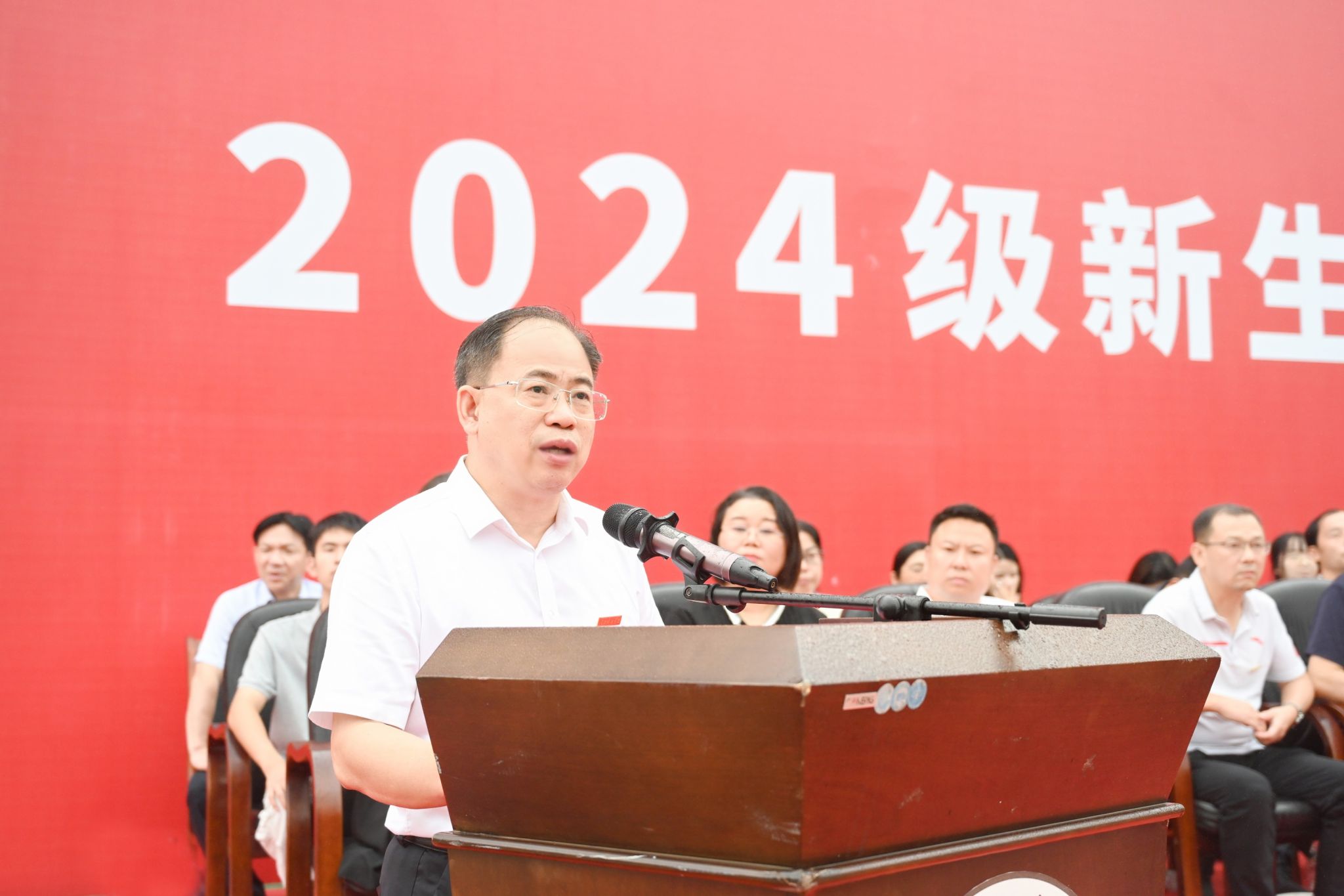 “一代代城院人追求卓越、敢为人先,城院的影响正立足湖南、辐射全国、走向世界……”何振寄语2024级新生:一城有一城的风景,一程有一程的追求,同学们要融入城院的奋起、融入城院的精神、融入城院的愿景,握紧“接力棒”,一张蓝图干到底,在新征程上跑出加速度,争做筑梦人、追光者。