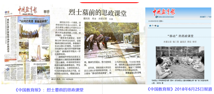 在积极参加省委教育工委组织的大学生研究性学习竞赛和大学生思想政治理论课实践教学成果展示活动的同时,以课程为单位,以培育和践行社会主义核心价值观为主题,在“微”字上下功夫,形成了“五微”实践教学模式。《中国高等教育》(2017年15/16期)、《思想理论教育导刊》(2017年12期)、《湖南日报》(2017年3月24日内参)先后推介了我校思政课“五微”实践教学模式经验。