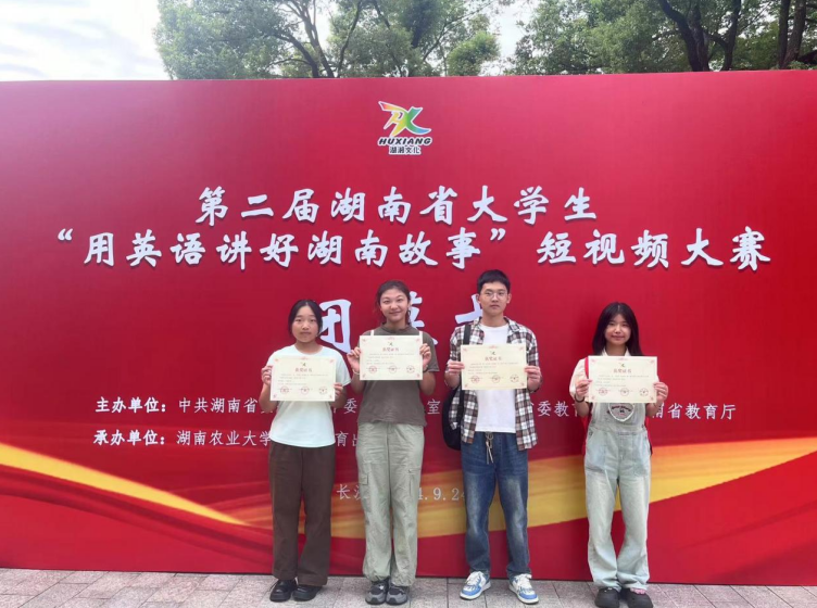 本网讯(通讯员 王紫祺)近日,2024年“高教社杯”全国大学生“用外语讲好中国故事”优秀短视频大赛的线下交流活动在湖南大学举行,我校人文学院汤佳、王紫祺、陈思艳和机械与电气工程学院孙康四名学生组成的团队拍摄的作品《环保科技的先行者——杨先生的故事》,经过现场短视频播放和精彩阐述,在激烈的角逐中表现优秀,最终荣获全国一等奖。