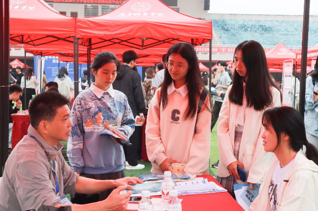 本网讯(通讯员 朱怡 冷紫怡)10月17日,湖南省高校毕业生就业区域性行业性常设市场(益阳片区)暨JN江南·(中国)体育官方网站2025届毕业生秋季综合双选会在东田径场举行。校长何振、党委副书记袁志成来到现场指导就业工作。