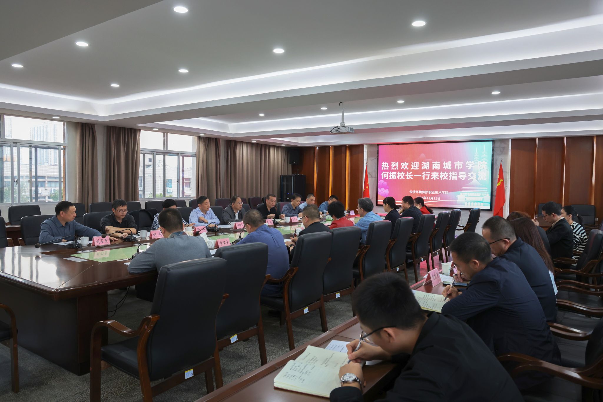 本网讯(通讯员 王立刚)11月11日,校长何振,副校长雷存喜、谭献良赴长沙环境保护职业技术学院,调研指导“楚怡工匠计划”试点工作实施及环境工程专业学生培育情况,并看望“楚怡工匠班”学生。