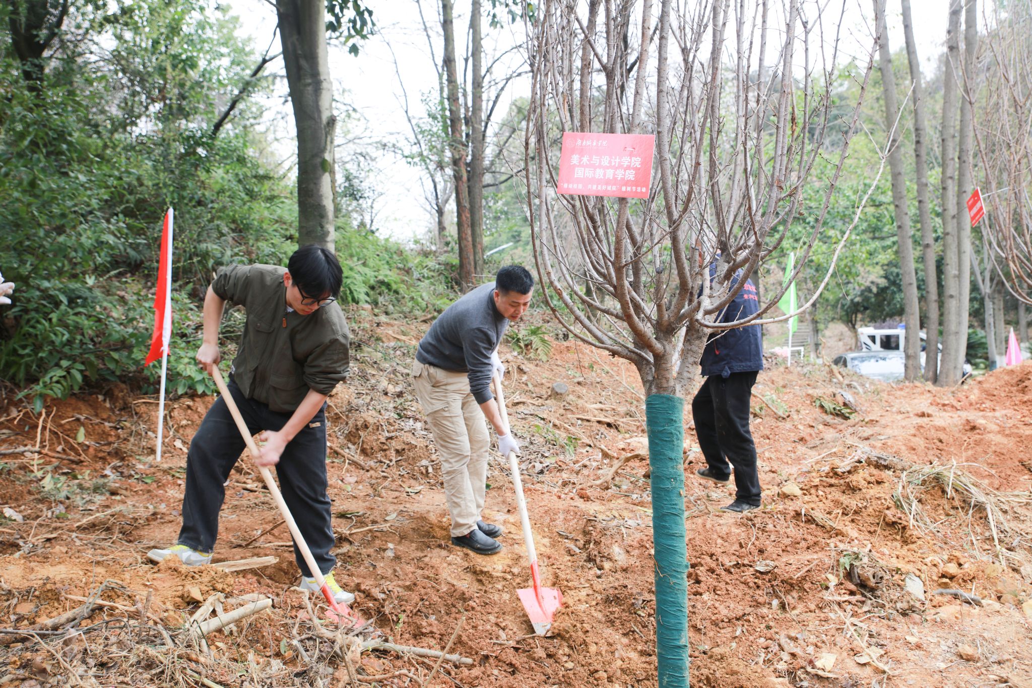 全体中层正职、各职能部门代表、各学院师生代表参加植树实践活动。