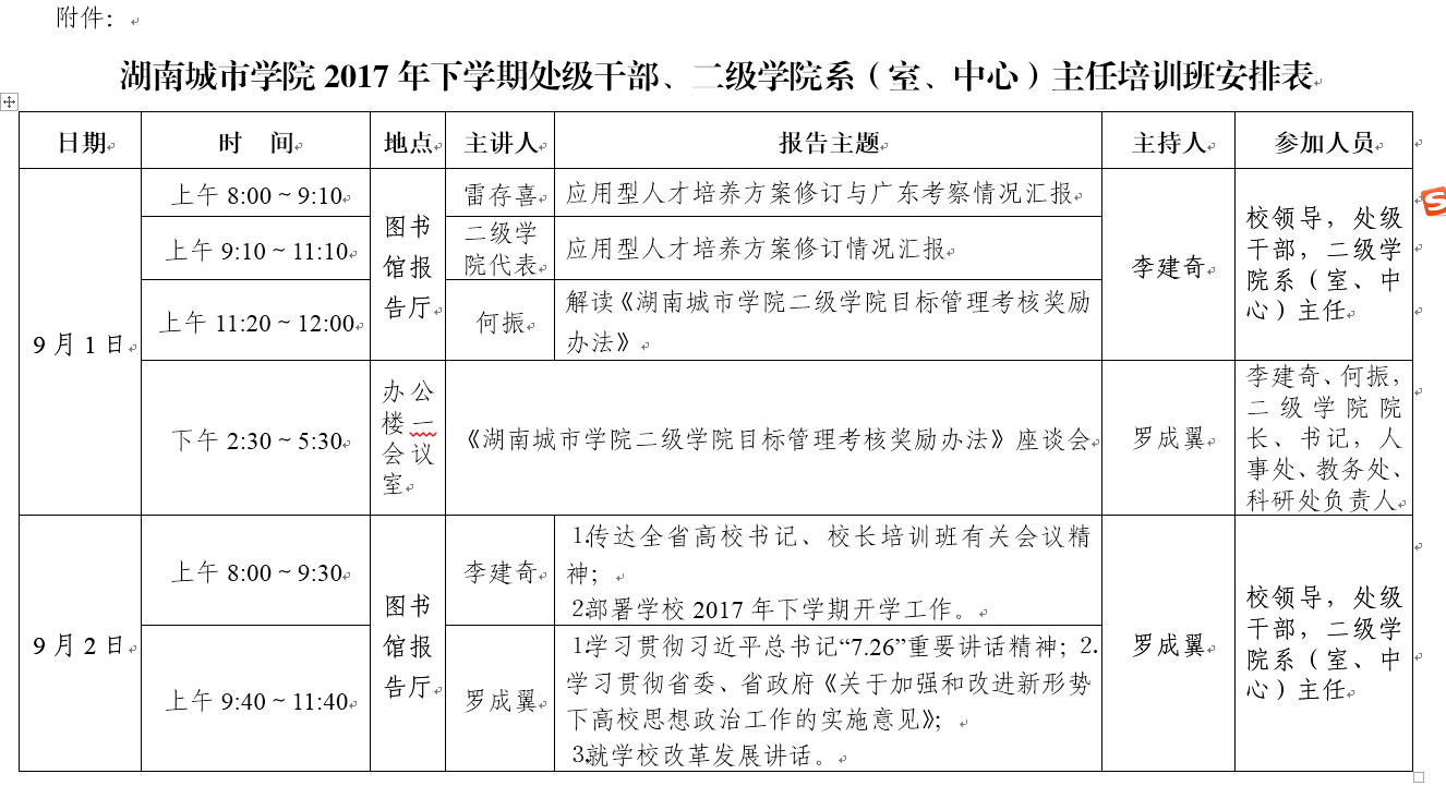 具体培训安排见《JN江南·(中国)体育官方网站2017年下学期处级干部、二级学院系(室、中心)主任培训班安排表》。