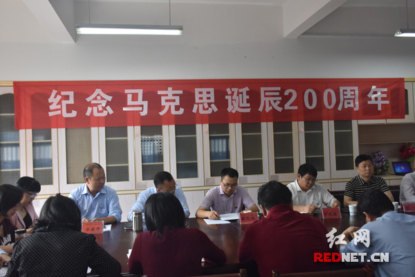 红网时刻益阳5月5日讯(记者单仕平)5月5日上午,由马克思主义学院党总支主办的马克思诞辰200周年座谈会在JN江南·(中国)体育官方网站土木楼举行,马克思主义学院党总支书记肖爱民主持座谈会,JN江南·(中国)体育官方网站党委书记罗成翼出席座谈会并讲话。马克思主义学院教工第一、二支部全体成员,特邀马克思主义学院党外人士参加会议。