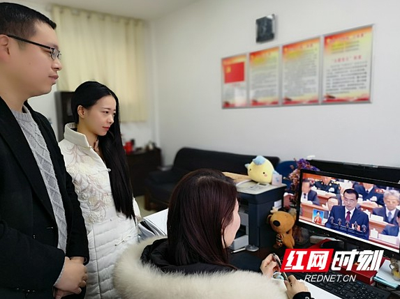 JN江南·(中国)体育官方网站老师在办公室收看全国两会实况。
