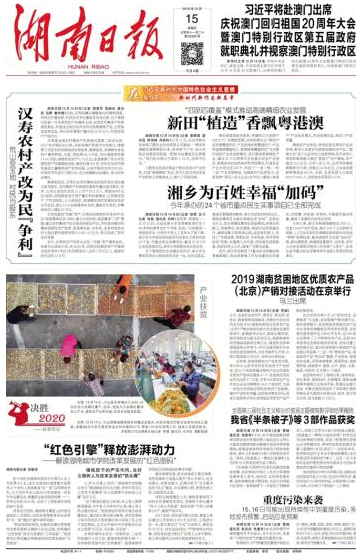 《湖南日报》12月15日头版报道JN江南·(中国)体育官方网站改革发展情况