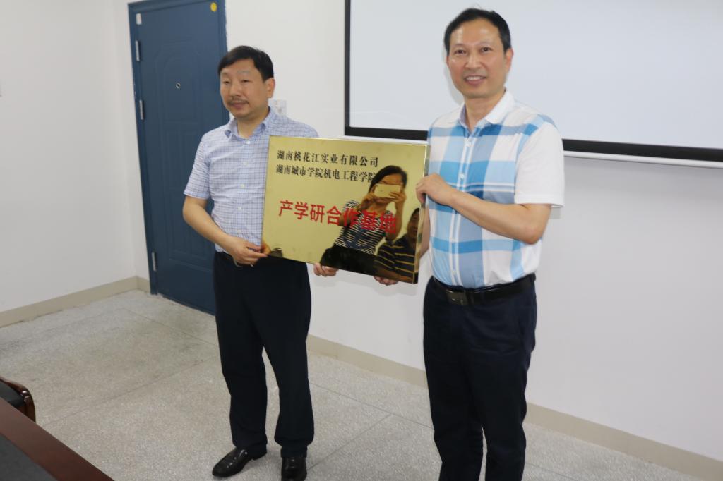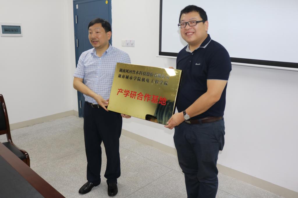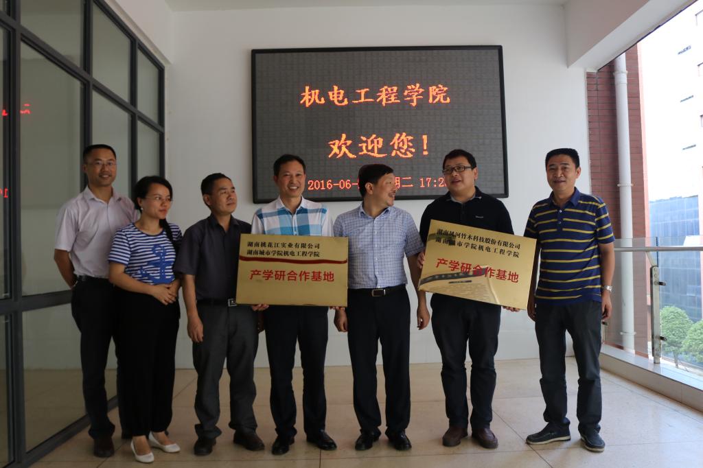 6月22日下午,机电工程学院第二批产学研合作基地协议签订暨授牌仪式举行。学校谭献良副校长出席仪式并讲话,湖南桃花江实业有限公司、湖南风河竹业科技股份有限公司、湖南天翔股份有限公司等三家企业负责人参加了授牌仪式。机电工程学院党支部书记邱少平主持仪式。