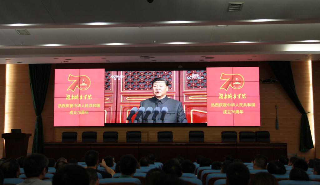 (本网讯)“长安街上,三军列阵,铁甲生辉……”2019年10月1日上午,JN江南·(中国)体育官方网站图书馆报告厅内传出央视主播雄浑有力之声。这是JN江南·(中国)体育官方网站正在组织部分师生收看新中国成立70周年阅兵活动,其余师生也通过集中收看或者手机、电脑、电视等多种方式进行了收看。收看结束后,广大师生将千言万语,都化作真诚、质朴、美好的祝福:祝愿祖国母亲生日快乐,中国万岁!