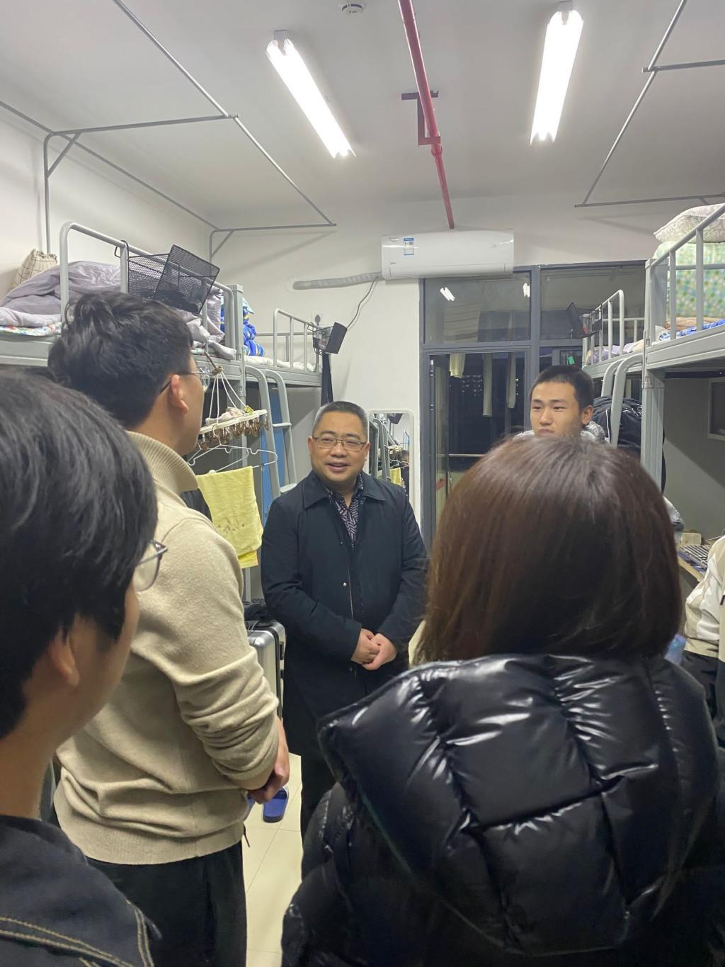 2021年2月28日,学校学生全面开学,学子们正式开启了牛年学习新征程。为深入了解学生到校情况、学习生活准备情况等,3月1日晚七点半,学院领导邓曙光、龚彬、刘辉、周理带领全体辅导员、班主任分五组深入学生公寓走访学生。