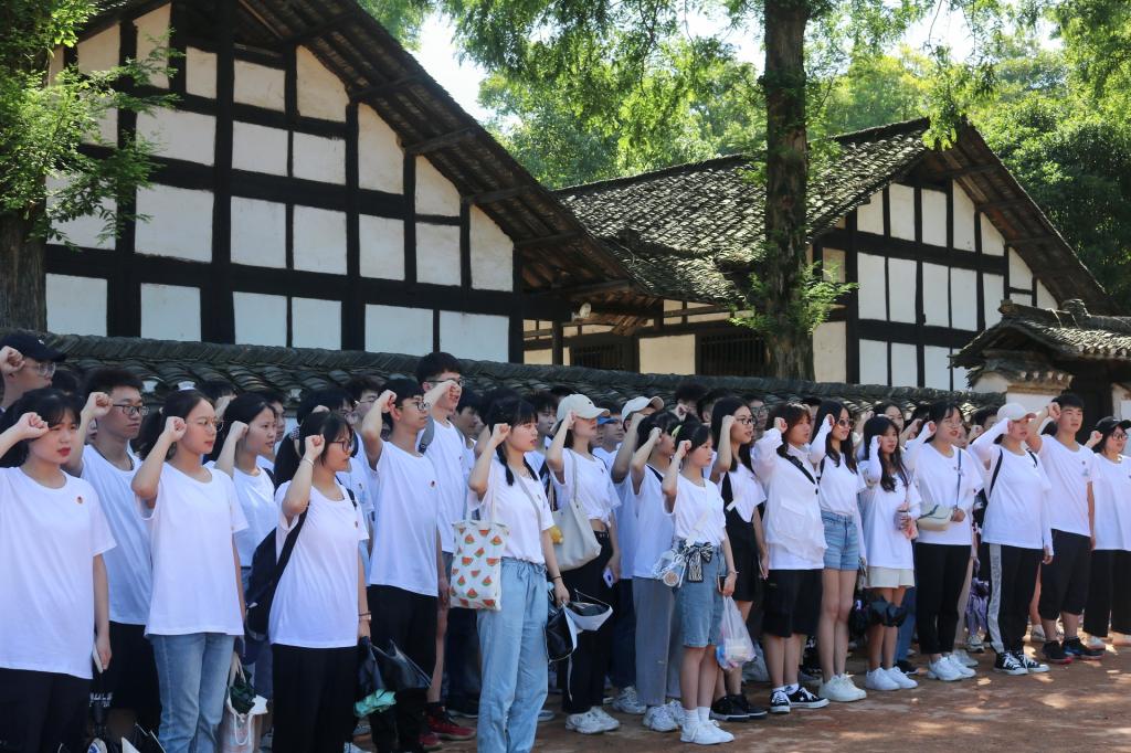 晨曦初露,旭日临窗。同学们来到了被誉为描写农村生活的“四大名旦”和“四杆铁笔”之一周立波的故乡,参观了周立波先生的故居,并合影留念。参观结束后,组织新团员入团宣誓,老团员重温入团誓词,并齐唱团歌。党总支副书记龚彬对此次团日活动发表讲话,向同学们介绍了周立波先生的生平事迹以及希望同学们在此次团日活动中有所收获。接着,年级主席姚洪涛做为代表分享党史故事,文娱部刘露静和赵小康进行党史文字朗诵。为检验学生干部对党史的了解情况,开展了有关党史的有奖问答活动。同学们踊跃参与,了解到了一个又一个党史小知识并分享了自己参与本次活动的感受。此外,十大公益人物彭中强介绍了在疫情高风险区开展志愿服务情况,为同学们树立了服务社会的榜样。最后,党总支副书记刘辉进行活动总结,对同学们在此次活动中的展现出良好的精神风貌表示十分满意,勉励同学们能够向周立波先生学习,不断沉淀自己,响应时代的号召,勇担社会责任,一展鸿鹄之志。本次团日活动就在同学们慷慨激昂的歌声中落下帷幕。
