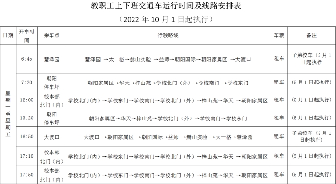 2.教职工上下班乘车时间表