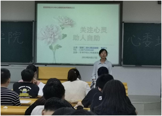 2019年9月17日星期二晚上19点30分,管理学院心理部在管理楼208教室召开了本学期第一次心委培训工作。本次培训由管理学院辅导员张力老师主持,曹资立老师担任主讲人,主要的培训对象是大二、大三的心理委员。