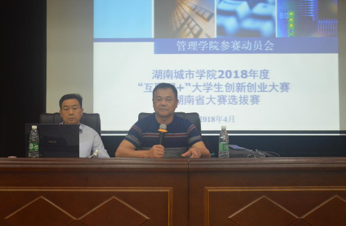 2018年4月1日、4月3日晚七点,管理学院针对全体在校学生召开了连续两场“互联网+”大学生创新创业大赛动员大会,地点在学生活动中心。主讲人是管理学院副院长汤勇及管理学院公共管理系主任李双清,出席本次动员大会的嘉宾有管理学院党委副书记贺望林、分团委书记李姗、辅导员黄慧雅。