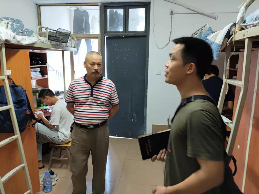 在走访过程中,辅导员们对大家提出的关于校园安全管理、校园常规性事务、寝室用水用电等各方面的问题进行记录并一一解答。王方俊老师指出,同学们应加强自我管理,保持干净整洁的寝室环境,养成健康文明、积极向上的生活习惯,珍惜在校时光,充分利用课余时间开展各种有益身心健康的科研、文体活动,以此来丰富即将启程的大学四年生活。