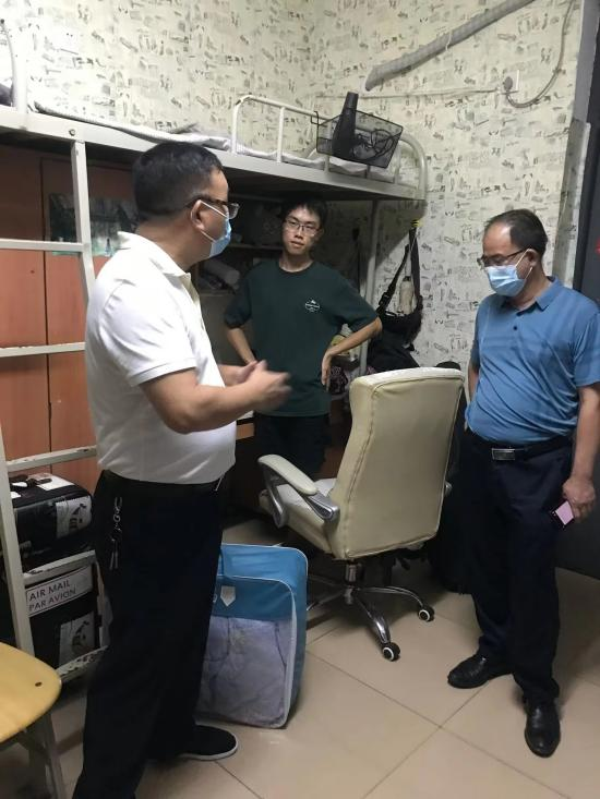 8月28日,学校党委委员、副校长何振教授下学生寝室,看望开学返校的学生,了解学生的学习生活情况,学院党委书记王正安及辅导员李姗老师等陪同。
