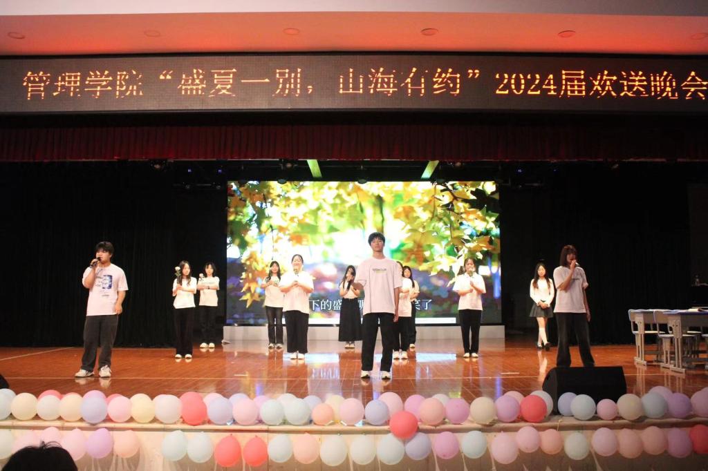 本网讯(通讯员 胡威朋 王海琼)恢弘盛世,青春盛宴,在这美好时节,管理学院于2024年6月6日晚19时举行“盛夏一别,山海有约”2024届欢送晚会。学院领导班子成员、系室老师、毕业班辅导员、班主任及2024届毕业生共同观看了此次晚会。