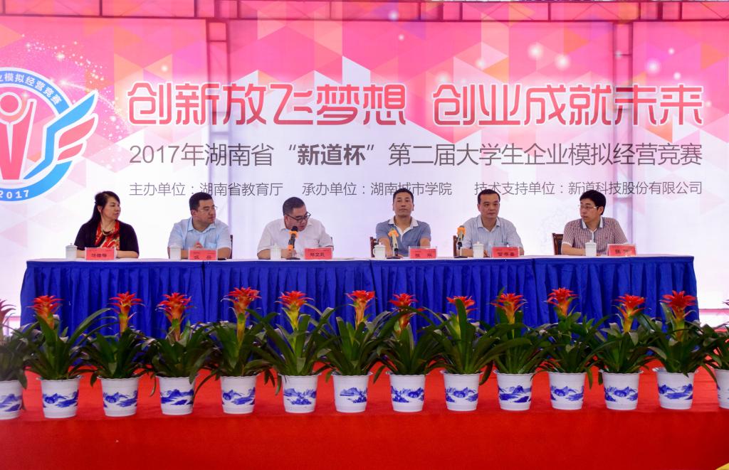 9月24日中午12:30 ,“新道杯”第二届湖南省大学生企业模拟经营竞赛闭幕式在我校体育馆内举行。湖南省教育厅高教处副处长张平,JN江南·(中国)体育官方网站副校长雷存喜、郑卫民,JN江南·(中国)体育官方网站管理学院院长汤腊梅等领导人到场出席,我校郑卫民副校长主持闭幕式。