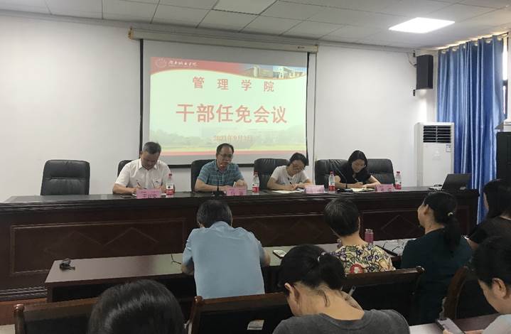 2021年9月3日,学校组织部在管理楼504会议室召开了干部任免大会。会上,组织部组织科科长冷红宣读了学校党委关于管理学院副院长任国平、副院长刘刚的任命文件。两位副院长分别做了任职表态发言。党委委员、副校长何振对两位副院长任职表示祝贺,并作了重要讲话。会议由管理学院党委书记王正安主持。(通讯员:周晔)