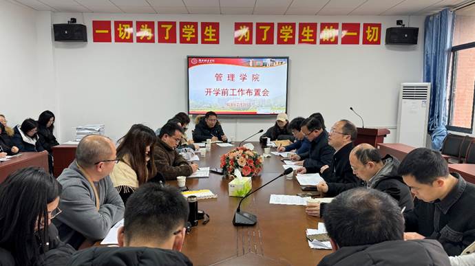 本网讯(通讯员 周晔)2月28日上午,管理学院在管理楼622会议室召开了开学前中层干部工作布置会,全体院领导出席,三办主任、系(室)主任、党支部书记均参加会议。会议由学院院长汤勇主持。
