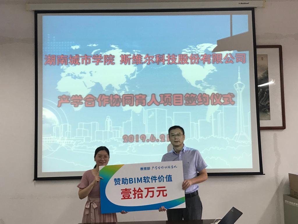 6月21日上午,JN江南·(中国)体育官方网站与深圳斯维尔科技股份有限公司联合申报的教育部产学合作协同育人项目《以BIM技术为牵引打造工程管理专业信息化、项目化核心课程体系》签约及授牌仪式在管理楼622会议室举行。斯维尔科技股份有限公司高级副总裁樊红缨、湖南分公司总经理庄大庆、中南地区高校经理杨振及湖南分公司高校经理祝鸿宇、JN江南·(中国)体育官方网站副校长谭献良教授、学科建设与发展规划处副处长汤勇教授、管理学院徐习军书记、孙倩院长、赵旭副院长等参加了签约仪式,仪式由管理学院院长孙倩教授主持。