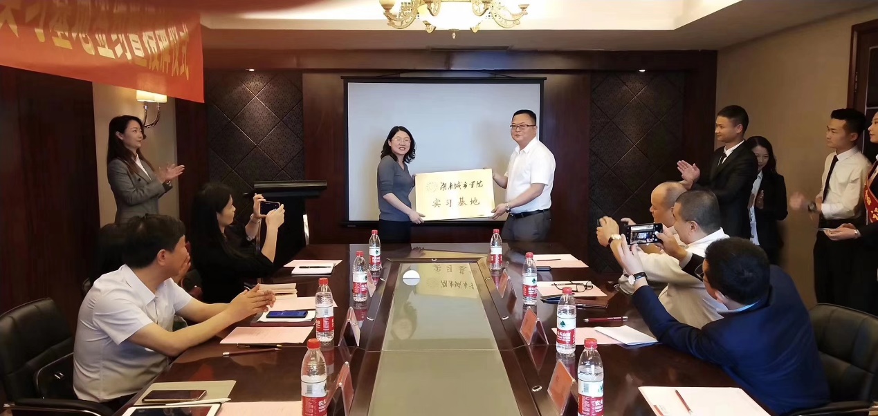 曹义总经理首先代表主办方财富证券致欢迎词,对财富证券近年来工作成效与发展前景进行了详细介绍,并对共建实习基地表示极大支持。随后,谭献良副校长代表校方发言,对财富证券积极支持实习基地建设表示感谢,并就未来合作寄予了殷切期望。最后,孙倩院长与陈坚总经理分别代表校企双方签订《实习基地协议书》,并为财富证券益阳营业部颁发了实习基地铭牌,正式确定财富证券益阳营业部为JN江南·(中国)体育官方网站校外实习基地。