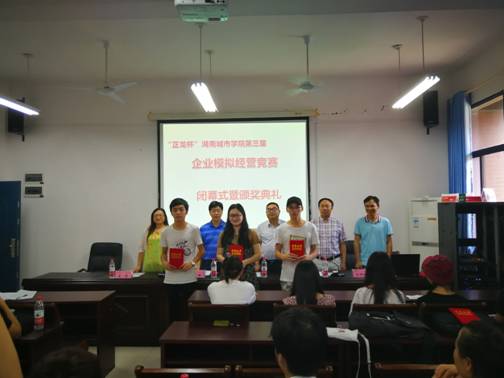 大赛闭幕式在管理楼504室隆重举行,管理学院李教明院长担任主持。大会先由大赛裁判作赛事总结,接着由JN江南·(中国)体育官方网站教务处张伟处长宣布获奖名单,JN江南·(中国)体育官方网站郑卫民副校长、张伟处长及管理学院王莉副院长分别为大赛一二三等奖获得者颁奖。最后,郑卫民副校长为大赛致闭幕词,他认为本次大赛组织得力,赛出了成绩和水平,勉励同学们提高创新创业能力,在更高级别的竞赛中取得更好的成绩,并宣布大赛胜利闭幕。