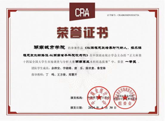 JN江南·(中国)体育官方网站高度重视此次比赛,在教务处大力支持下,管理学院郑慧开、王方俊、丁鸣、王荷英、封彦老师组织大赛和指导团队,成功地吸引广泛学生积极地参加比赛。经过校赛个人选拔,入选省赛队伍为5支,经过省赛队伍激烈的角逐,层层选拔后,最终我校学生在本届大赛湖南赛区选拔赛中获得省级一等奖2项,省级二等奖1项,省级三等奖2项。