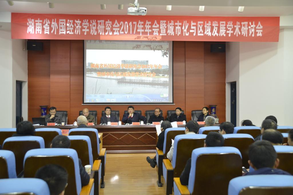湖南省外国经济学说研究会2017年年会暨城市化与区域发展学术研讨会由湖南省社科联主办、JN江南·(中国)体育官方网站管理学院承办,于2017年12月23日在JN江南·(中国)体育官方网站土木楼828学术报告厅召开。会议开幕式由JN江南·(中国)体育官方网站副校长刘辉煌教授主持,党委书记罗成翼教授致欢迎词。罗书记对专家学者们的到来表示了最热烈的欢迎,向各位专家、教授介绍了JN江南·(中国)体育官方网站近一年来在改革与发展中取得的重要成绩以及努力的方向,并殷切希望参会青年教师和同学们能够从今天的学术盛宴中吸取养分。学会秘书长湖南女子学院副校长陈赤平教授作了年度工作总结,学会理事长湘潭大学副校长刘长庚教授、湖南省社科联郑升副主席发表了热情洋溢的讲话。