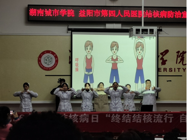 (益阳市第四人民医院护士们带领同学们学习呼吸操)