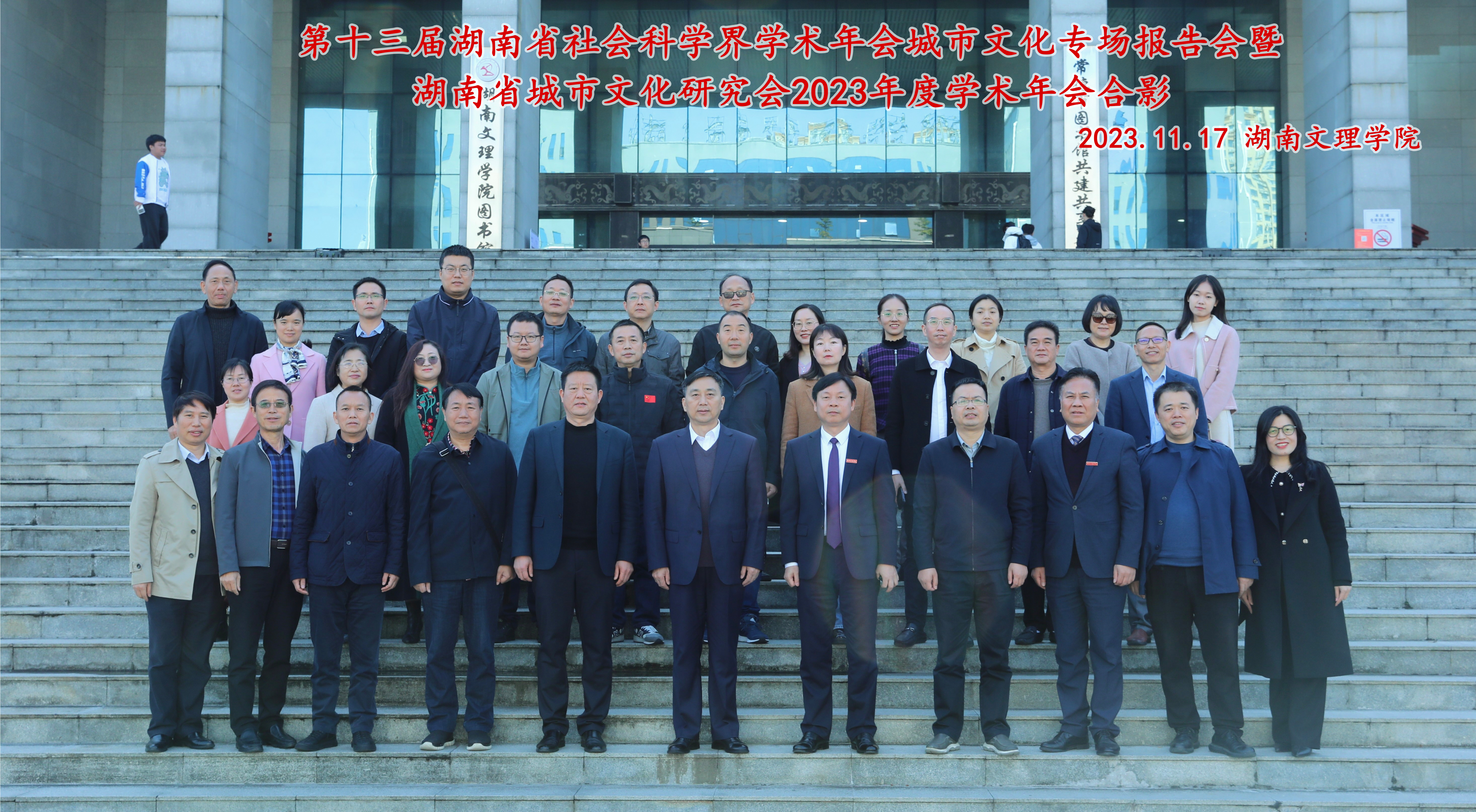2023年11月17日上午,湖南省城市文化研究会2023年度学术年会在湖南文理学院图书馆报告厅举行。我校袁志成副校长率学术期刊中心主任王莉、副主任付贵海、《城市学刊》编辑部主任贺常颖参加了会议。