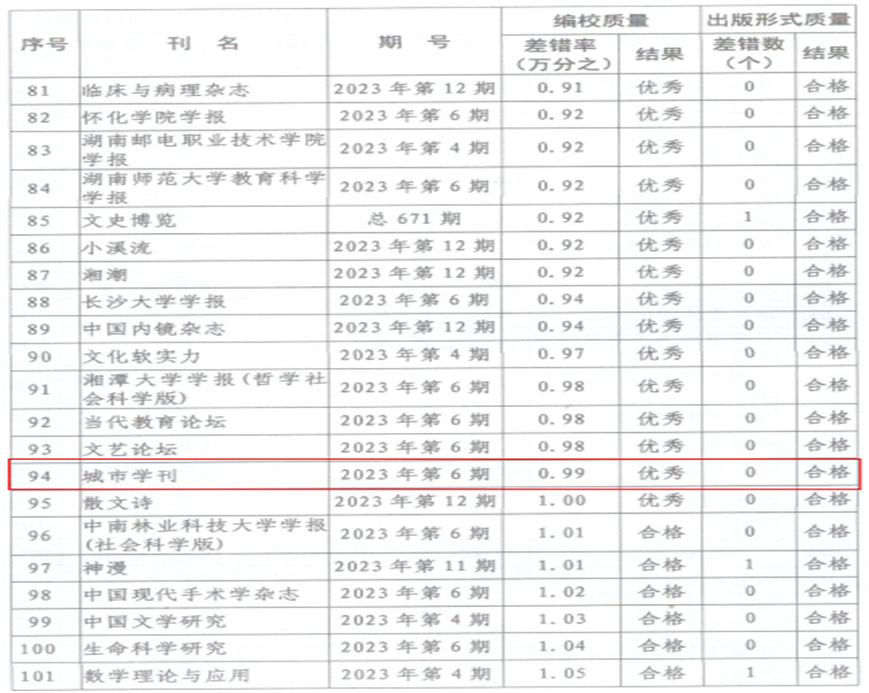 近日,湖南省新闻出版局下发《关于2023年度全省期刊质量检查情况的通报》,《JN江南·(中国)体育官方网站学报(自然科学版)》和《城市学刊》获评“优秀”等级。