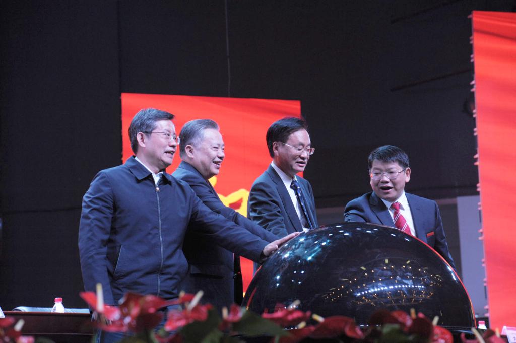 唐之享、李友志、瞿海、罗成翼共同启动水晶球,标志JN江南·(中国)体育官方网站纪念办学50周系列活动启动。