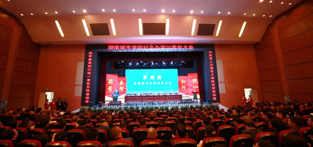 学校党委书记罗成翼致辞。他深情回顾了学校50年办学历程。合并前的两校艰苦创业、迎难而上,为学校发展积淀了厚实根基。学校初创者和历届领导者们白手起家,迎难而上,艰苦创业,坚守师范定位,培养了一大批名校长、名教师,为地方基础教育做出了重大贡献。突出城建特色,依托行业办学,对接中小城镇,为全省市县培养了大批规划建设人才,被国家教委确定为全国示范性高工专重点建设学校。新组建的城院抢抓机遇、融合奋进,为学校发展开启崭新征程。本世纪初,顺应高等教育体制改革大潮,JN江南·(中国)体育官方网站应运而生。两校合并伊始,快速推进深度融合。更新教育观念,转变教育模式,顺利实现从专科到本科的转型。2012年,第二次党代会明确了“三步走”发展战略,不断完善本科教育教学体系,人才培养质量不断提高,顺利通过了教育部本科教学合格评估,推进新校区二期工程建设,完成了两校区合一,办学质量与办学效益大幅提升。新时代的城院破立并举,改革创新,稳中快进实现了跨越式发展。2016年第三次党代会以后,学校顺应教育领域综合改革的时代潮流,自主全面系统地推进整体性重塑,以大改革推进了快发展。开展“三个发展”大讨论,制定“一二三五”发展战略;目标导向分类大发展,做强城建类学科、做大信息制造类学科、提质管理服务类学科、夯实基础类学科;破立结合推进大改革,一是破分而散,立精而集、专而能的机构调整与编制改革。将16个二级学院调整为12个。二是破身份限制,立业绩导向和核心指标导向的绩效分配与目标管理考核改革,激发干事创业活力。三是破守摊平庸,立能上能下,41名处级干部主动退出领导岗位,一批80后博士教授走上重要中层岗位。四是破封闭僵化,立校企(地)合作、产教融合的应用型人才培养模式改革,构建“1234”应用型人才培养体系。五是破粗而松,立细而实、紧而准的精细管理改革,开源节流创造近2亿效益。六是破传统滞后,立应用型、现代型制度体系的大学制度改革,推进治理体系和治理能力现代化。改革创新取得大成效。4年多来,新建运动场、和学生公寓,校园道路提质、美化亮化、教学楼栋改造等基本建设,职工待遇和幸福指数显著提高,获批“湖南省新增硕士学位授予单位立项建设单位”;高水平通过了教育部本科教学工作审核评估;跻身湖南省“高水平应用特色学院”行列;2020年,列入湖南省本科第一批次招生,实现了几代城院人的梦想。