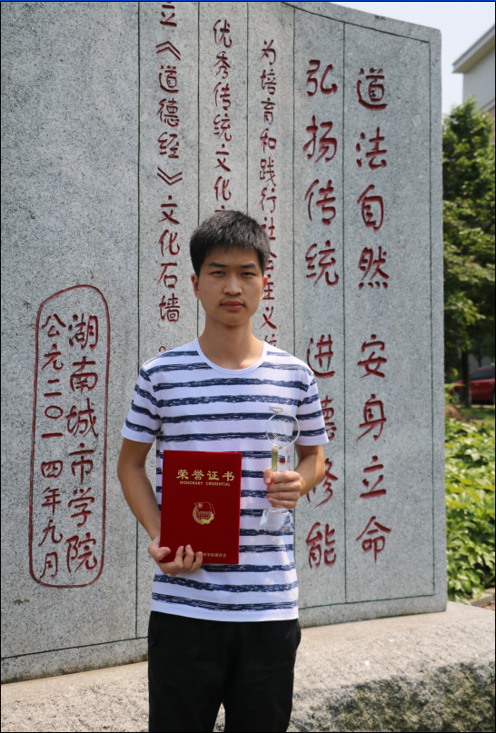 2015年4月获JN江南·(中国)体育官方网站第十二届十佳大学生提名奖;2015年10月 国家励志奖学金; 2014年12月 国家奖学金; 2014年10月 学习标兵; 2014年10月三好学生;2014年05月 优秀团员;2014年10月 一等奖学金;2014年5月通过湖南省计算机二级考试;2014年6月通过英语四级考试。