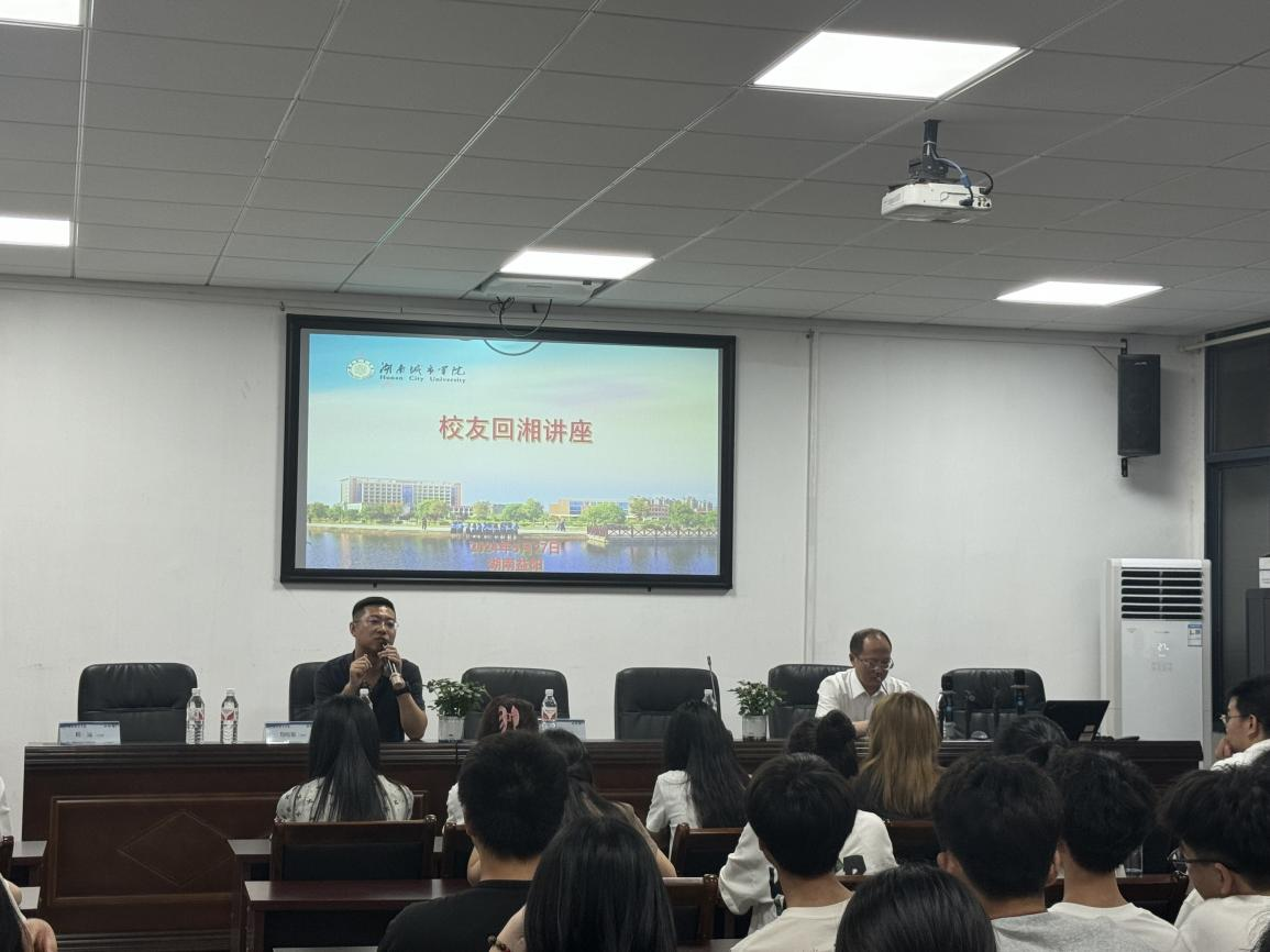 5月27日晚,“城院学子情系母校,榜样引领筑梦未来”校友回湘专题讲座在管理楼举行。